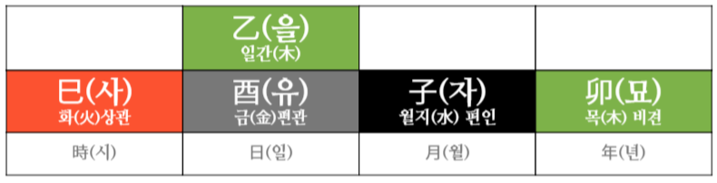 이 사주는 천간의 오행과 지지의 오행이 90%이상 일치한다.