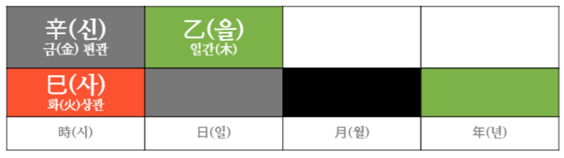 시 궁 신사(辛巳)시 편관, 편인이다.