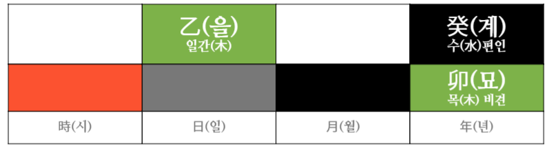 년 궁은 계묘(癸卯)년 비견, 정관이다.