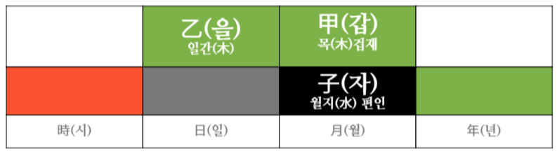 월 궁 갑자(甲子)월 겁재, 편인이다.
