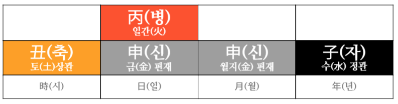 천간은 편관, 식신, 일간, 상관이다.