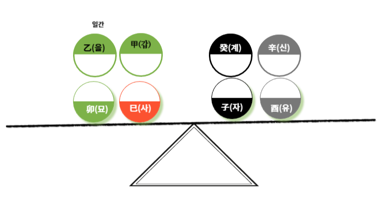 다행히 지지 사()화가 있어 약간에 온기를 더 하고 있다.
